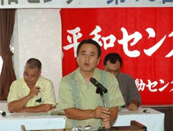 それゆえに、私たちは、このミサイルの嘉手納基地への配備に反対であることをあらためて内外に表明するとともに、北朝鮮をめぐる関係諸国が英知を結集し平和的外交努力によって、今日の緊迫する事態を打開することを求めます。そして日米両政府に対しては、嘉手納基地をはじめとする沖縄米軍基地の強化拡大ではなく、むしろ、その整理縮小・撤去を実現させ、朝鮮半島や北東アジアの軍事的緊張の緩和を図り、それによってこの地域に平和をもたらすことを要求し、この県民大会の総意において決議します。